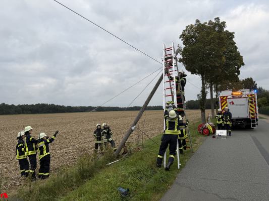 Am 11.10.2025 kamen die Kameradinnen und Kameraden der Ortsfeuerwehr Sankt Hülfe, im Rahmen der Hydrantenkontrolle, auf einem abgeknickten Telefonmasten zu, der auf die Straße zu fallen drohte. Die Einsatzkräfte beseitigten den Telefonmasten. Der Einsatz konnte somit um 17:15 Uhr wieder beendet werden.