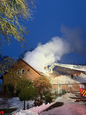 Am 07.02.2026 um 6:36 Uhr wurde die Drehleitereinheit der Ortsfeuerwehr Diepholz erneut nach Wetschen alarmiert. Dort kam es am Gebäude, wo es einige Tage zu vor gebrannt hatte, erneut zu einem Feuer. Die Drehleiter unterstützte bei der Brandbekämpfung. Nachdem sämtliche Glutnester gelöscht waren, konnte der Einsatz um 10:30 Uhr beendet werden.