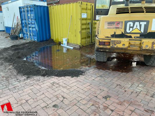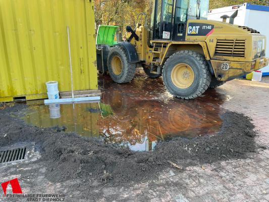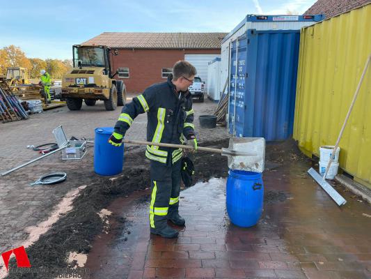 Am 05.11.2025 um 9:11 Uhr wurde die Ortsfeuerwehr Sankt Hülfe zu einem G1- Einsatz in die Straße ,,Alter Torfweg'' alarmiert. Vor Ort wurde ein mobiles Dieselfass beschädigt, wodurch ca. 600 Liter Diesel ausgelaufen sind. Um entsprechendes Material vor Ort zu haben, wurde die Gefahrgutstaffel Süd, welche bei der Ortsfeuerwehr Diepholz stationiert ist, nachalarmiert. Mitarbeiter der Firma haben schnell reagiert und einen Erdwall errichtet um eine Ausbreitung zu verhindern. Mit Hilfe der Gefahrgutstaffel wurden proben in verschiedenen Schächten genommen, wo weiterer Diesel nachgewiesen werden konnte. Anschließend wurde der ausgetretene Diesel abgepumpt und entsprechend mit Bindemittel aufgenommen. Außerdem wurden zwei Container durch die Firma umgesetzt bzw. angehoben, da auch unter diesen der Diesel gelaufen ist. Dieser Bereich wurde ebenfalls mit Bindemittel abgestreut und der Diesel entsprechend aufgenommen. Nachdem sämtliche Arbeiten der Feuerwehr beendet waren, konnte der Einsatz um 12:30 Uhr wieder beendet werden.